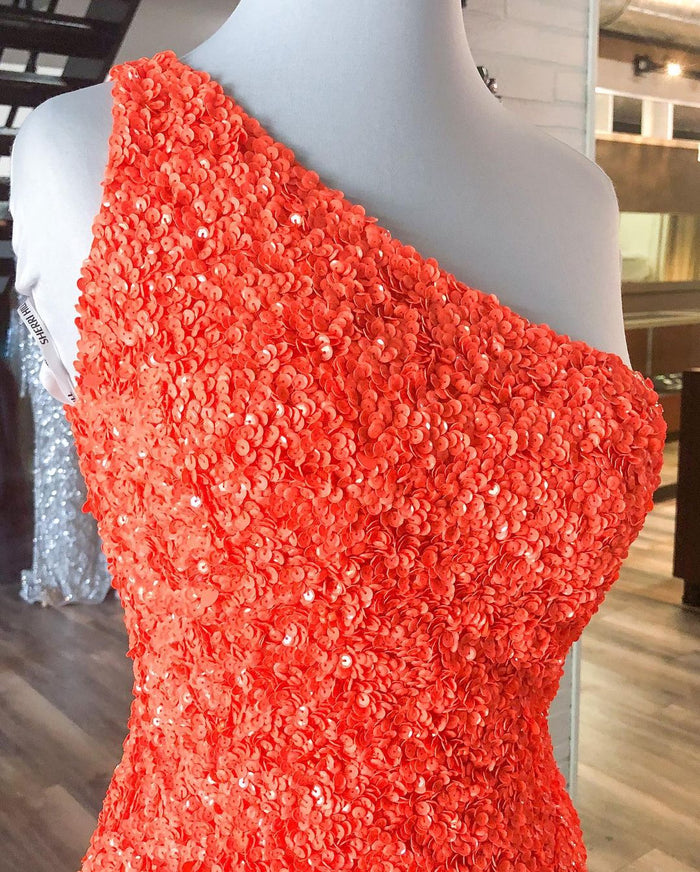 Orange One-Shoulder Cutout Mermaid Long Prom Dress with Slit