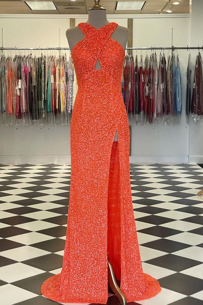 Sparkle Orange Sequin Mermaid Long Formal Dress