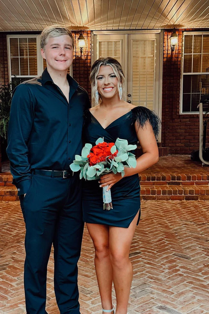 Black Straps Beaded Sheath Satin Homecoming Dress