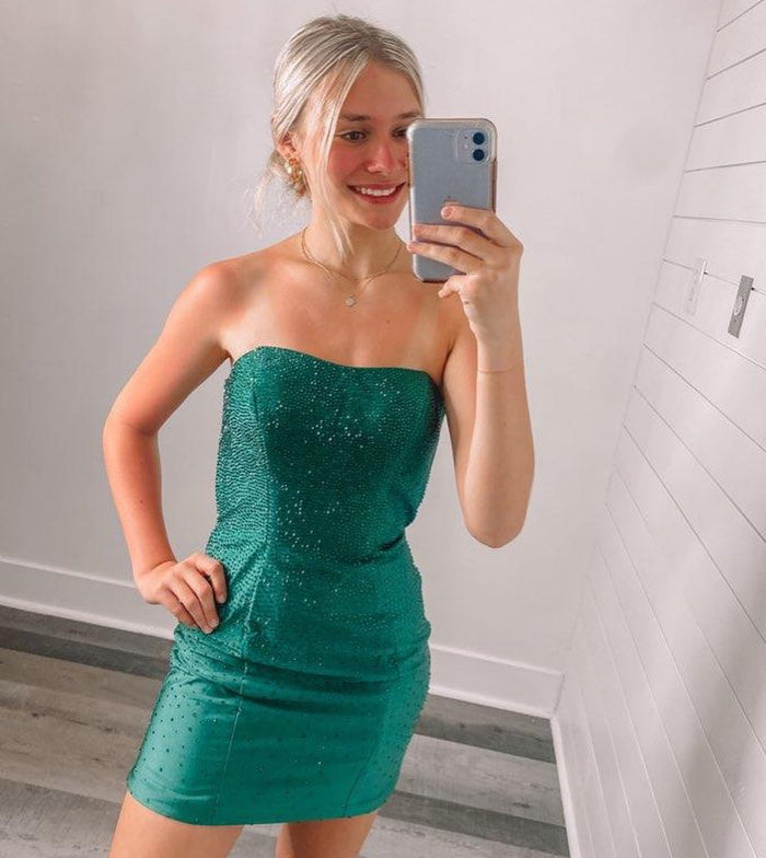 Green Beaded Lace-Up Bodycon Mini Homecoming Dress