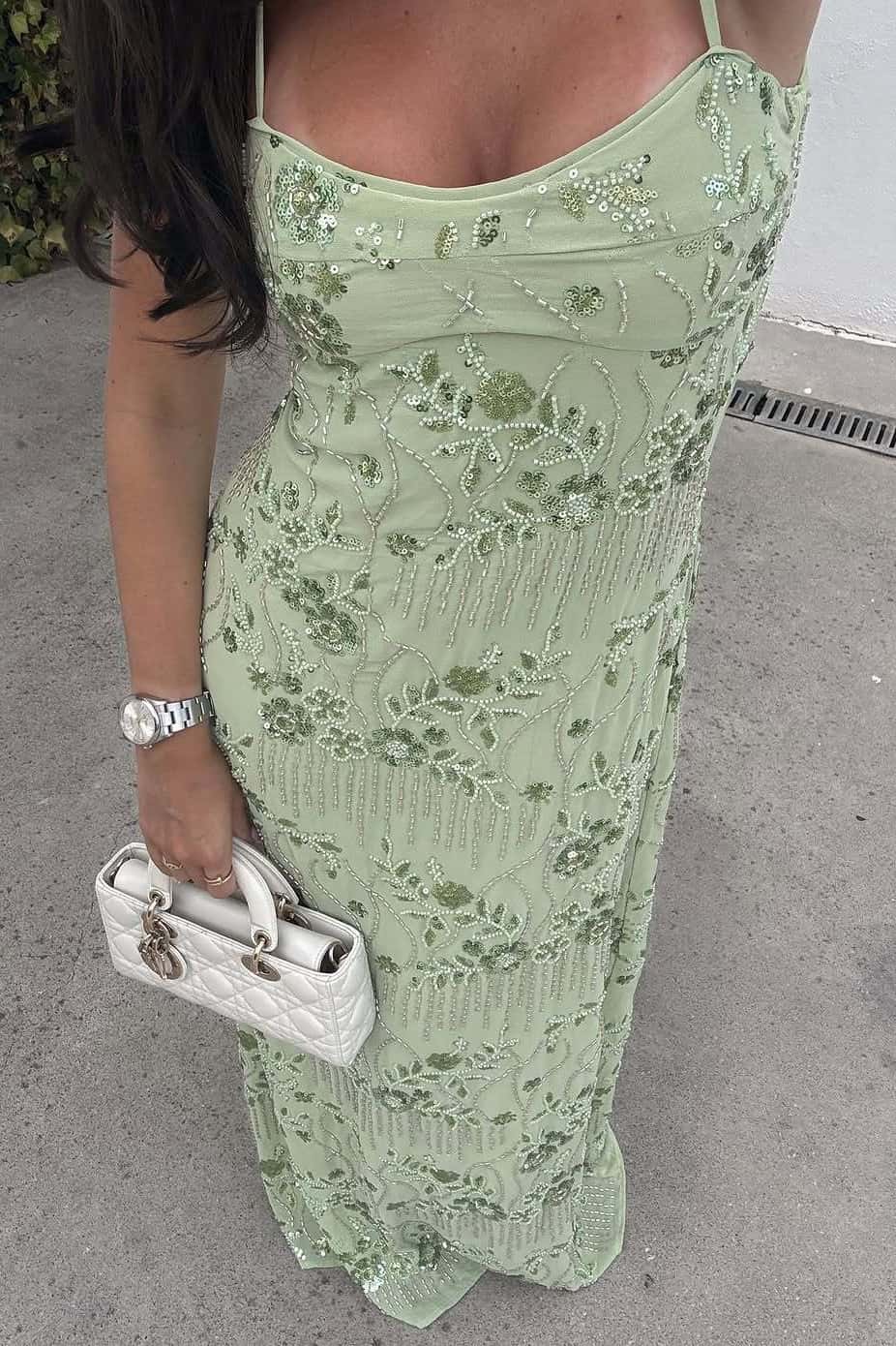 Straps Green Beaded Back Tie Dress