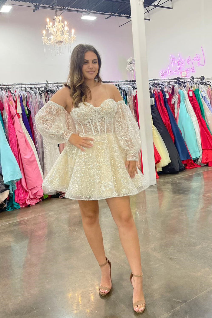 Ivory Lace Off-the-Shoulder A-Line Short Dress