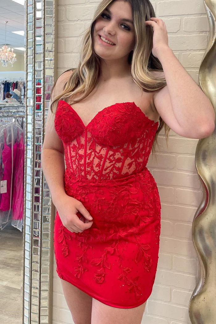 Red Sequin Lace-Up Bodycon Mini Homecoming Dress