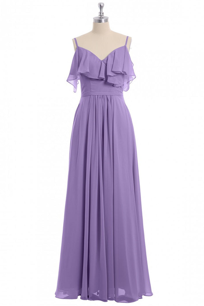 Lavender Chiffon Spaghetti Straps Ruffled A-Line Long Dress
