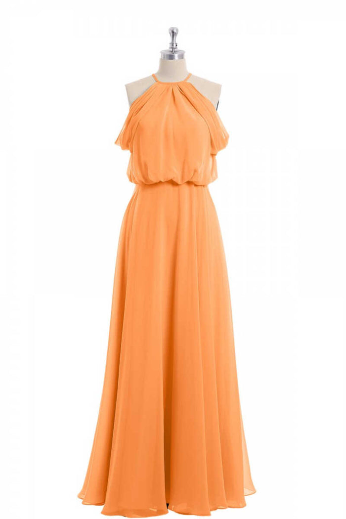 Straps Flounce Orange Chiffon Long Bridesmaid Dress