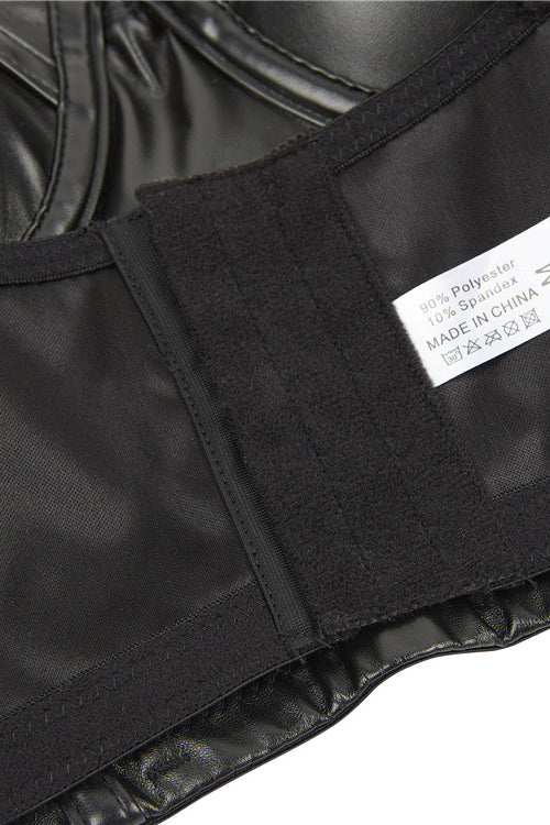 This corset top features a sweetheart neckline with adjustable spaghetti straps, and PU leather fabric.