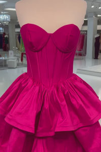 Fuchsia Strapless Layers A-line Long Prom Dress