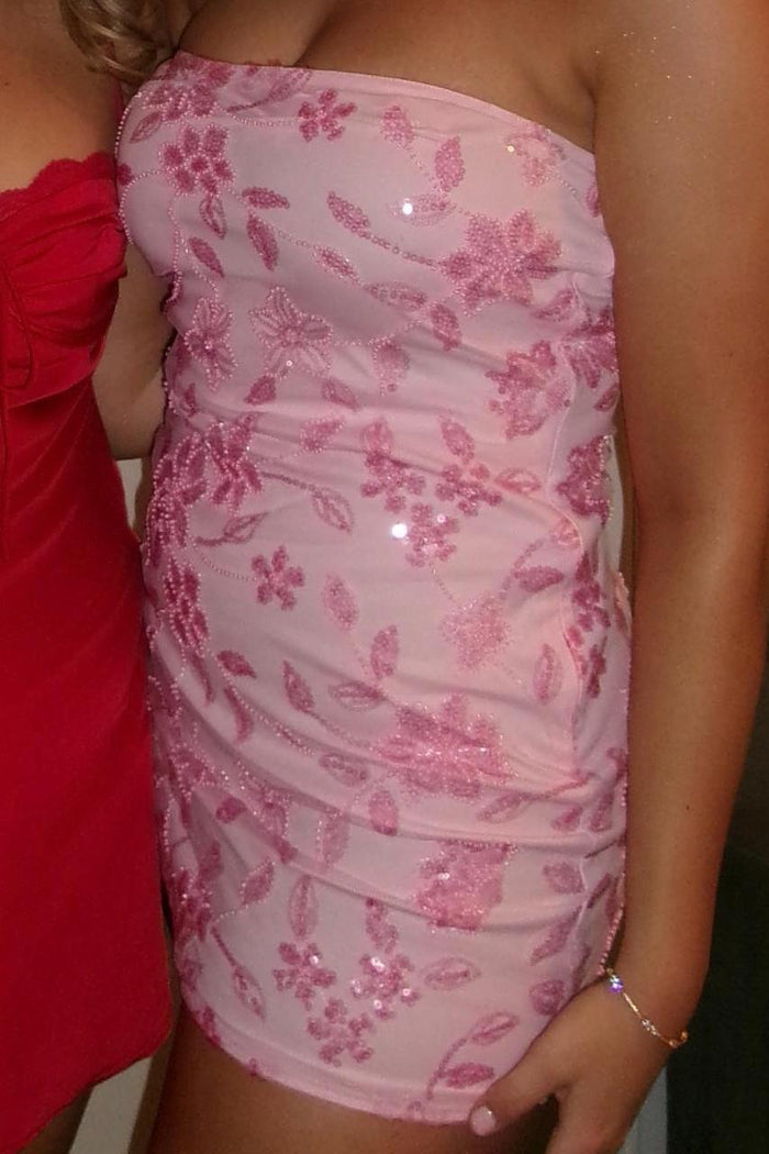 Pink Strapless Sequins Sheath Beaded Homecoming Dress