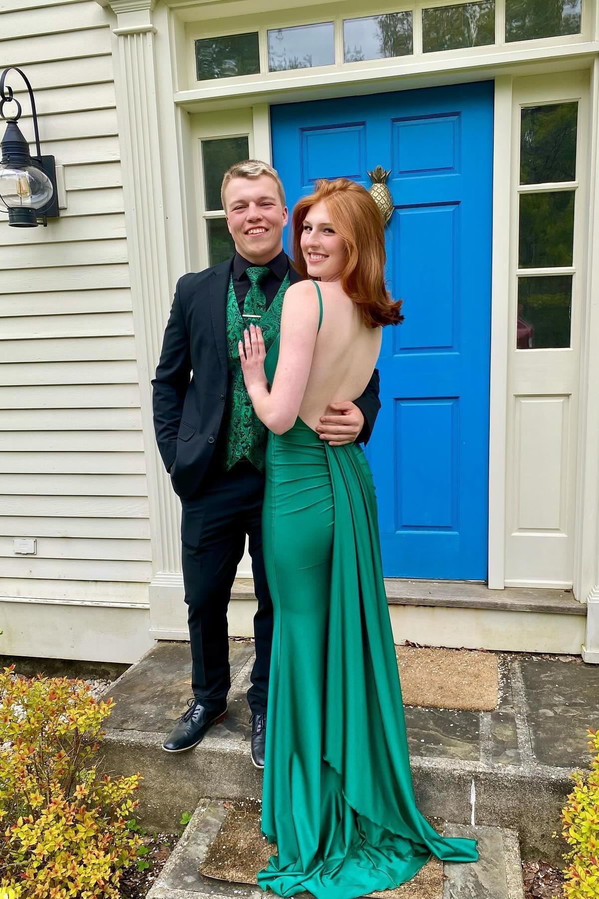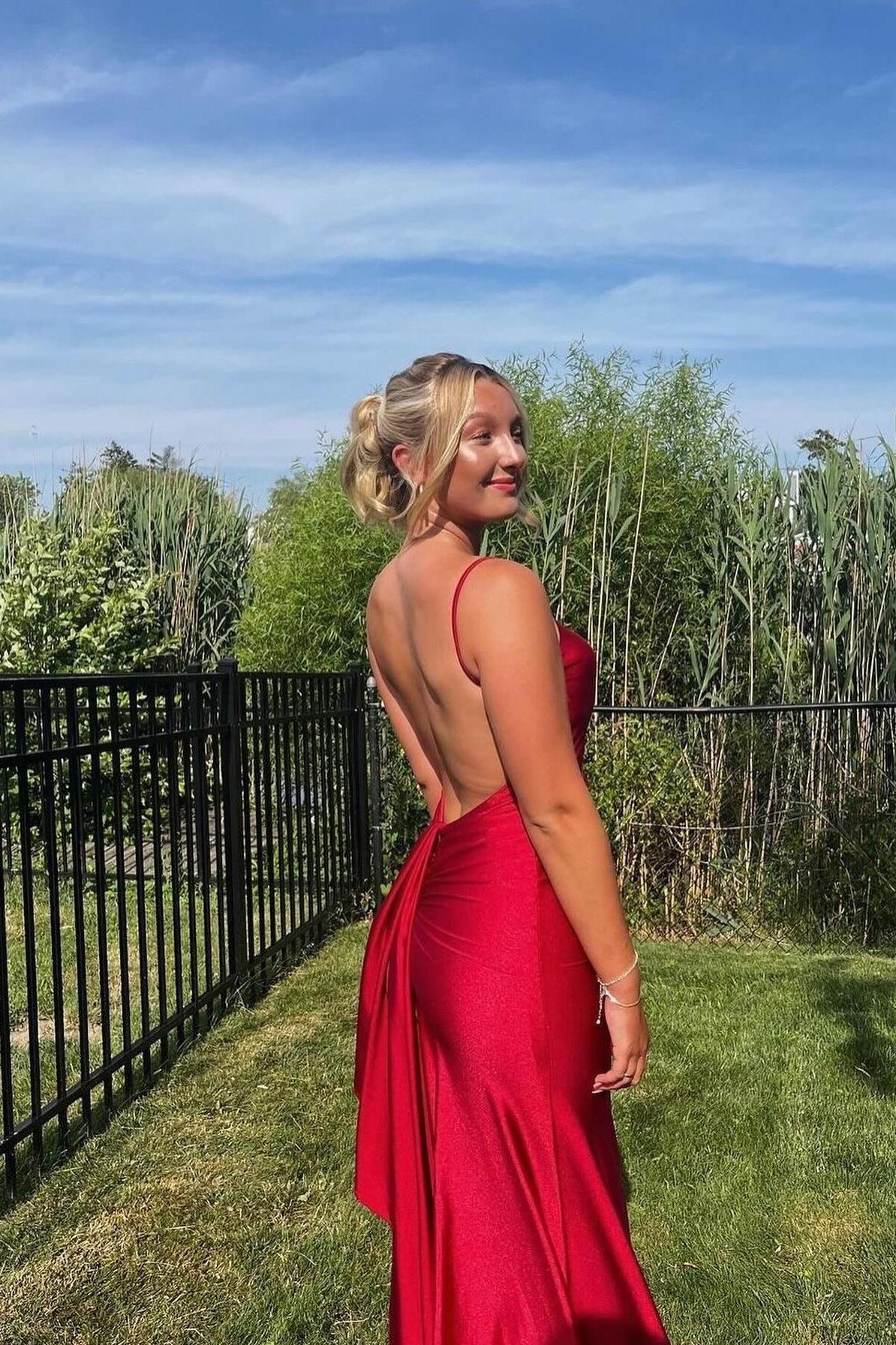 The Straps Lavender Mermaid Formal Dress with Train is crafted from spandex material and features a mermaid silhouette, V neck, and spaghetti straps. Its full length design includes an open back with a gorgeous train.