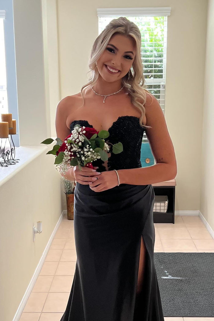 Black Strapless Mermaid Satin Long Prom Dress with Slit