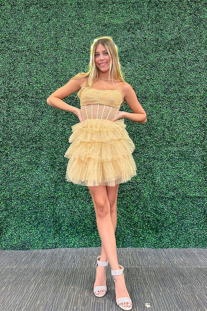 Gold Metallic Sweetheart A-line Short Tiered Party Dress