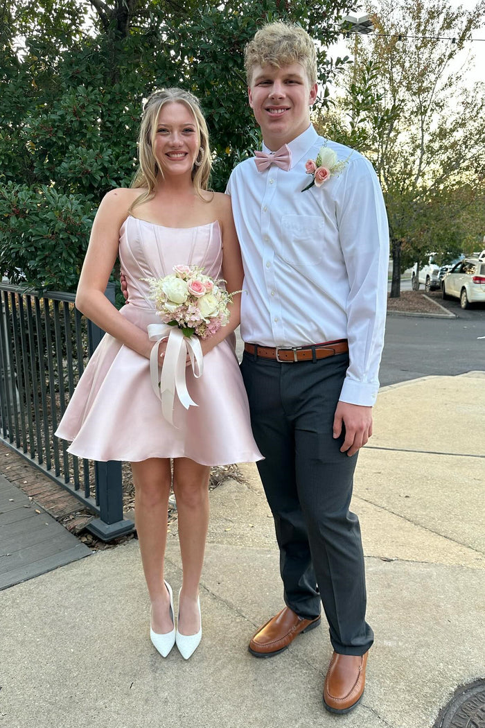 Pink A-line Strapless Homecoming Dress with Detachable Sleeves