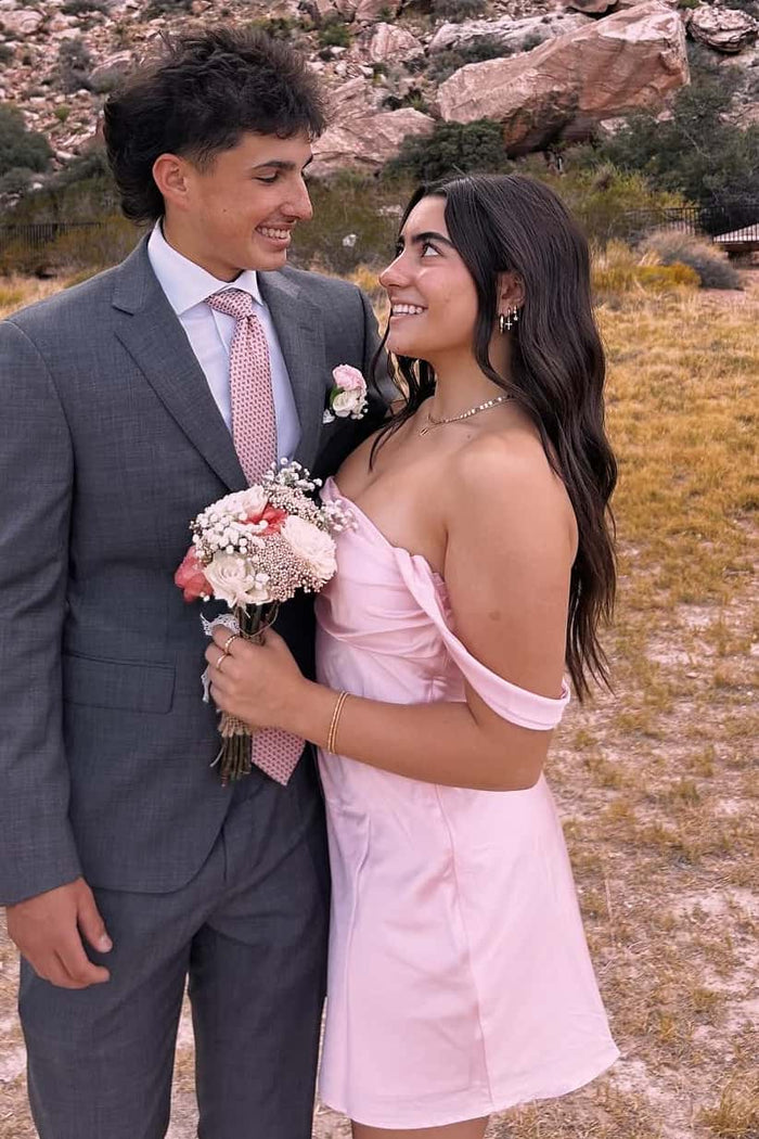 Pink Plunging Off-the-Shoulder Appliques Multi-Layers Homecoming Dress