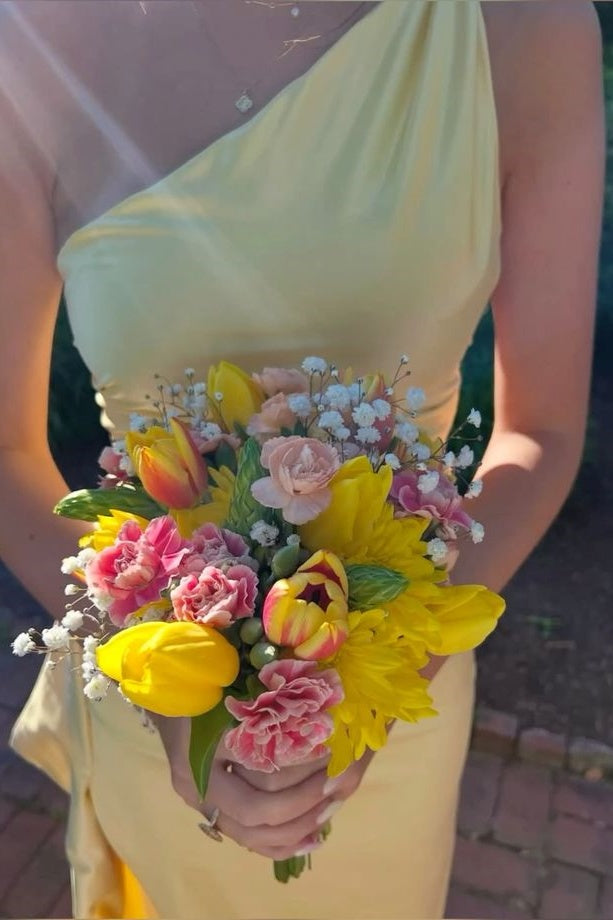Straps Yellow Ruffled Long Dress with Rosette