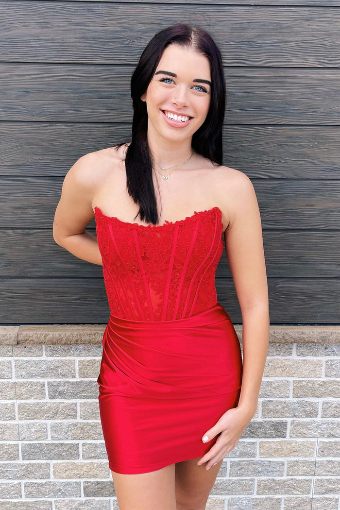 Red Strapless Sequins Sheath Homecoming Dress with Slit