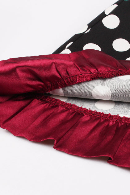 Black Dotted Strapless A-line Ruffled Vintage Dress