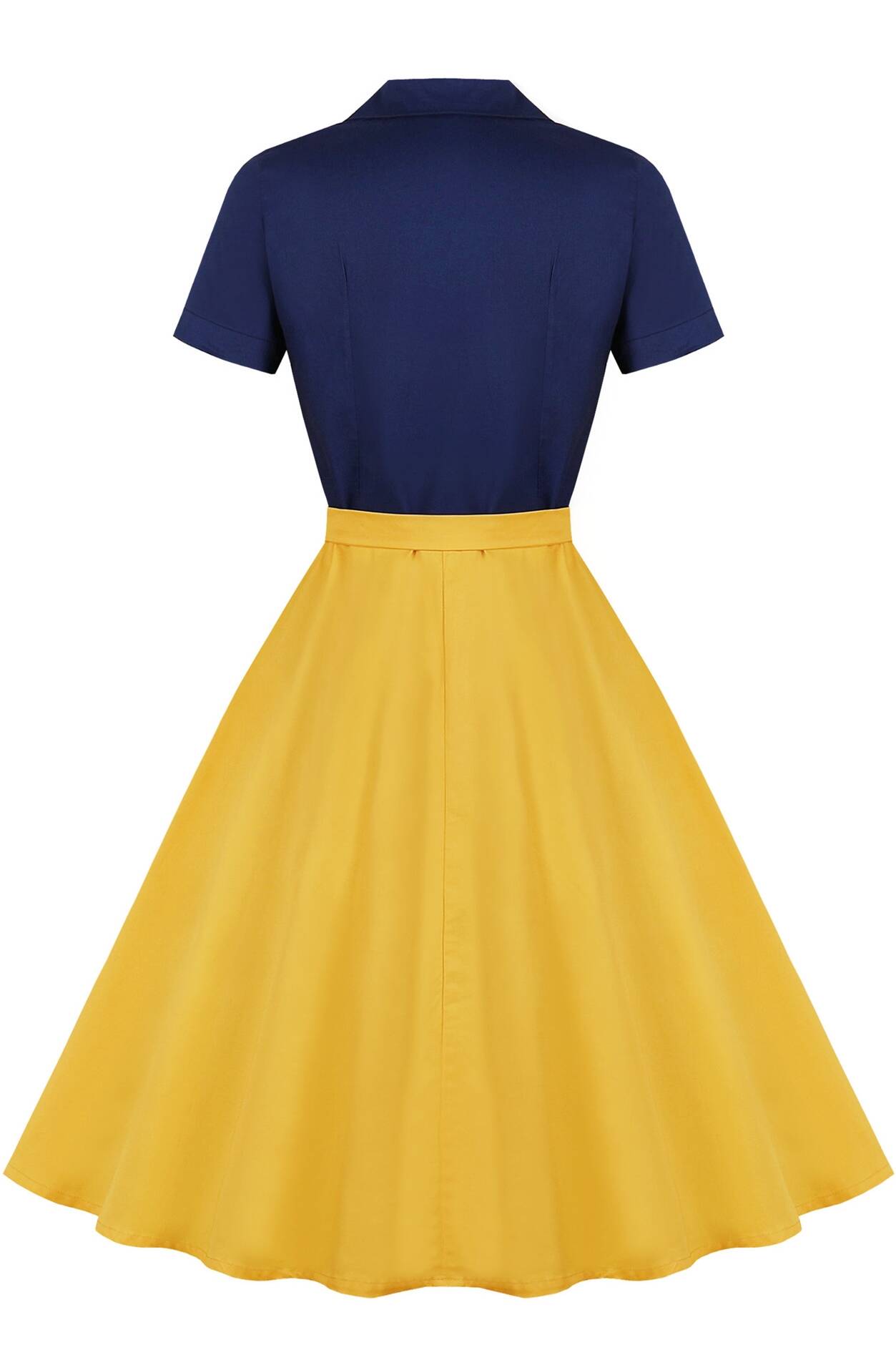 Live in the moment, gals! This playful Knee length is crafted in cotton and features a shirt collar throughout the navy blue backdrop. Turn back your fashion clock to the midst of the 1950s, where feminine chic reigned supreme, and dresses oozed pure elegance and seduction.