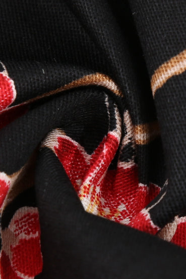 Black Surplice 1/2 Sleeves A-line Floral Vintage Dress